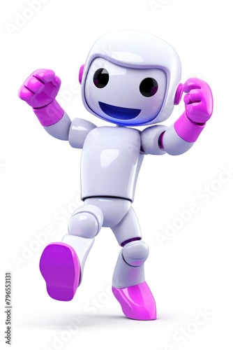 © Rawpixel.com, Fototapeta premium A cute 3d cartoon man with white computer head robot pink white background.