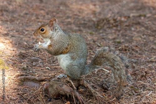 Obraz premium a cute eastern gray squirrel (Sciurus carolinensis), also known as the grey squirrel,