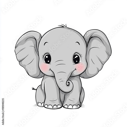© Aisyaqilumar, Naklejka premium A cute elephant with big eyes and a smile