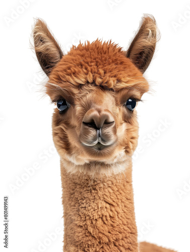 © Sunny_nsk, Obraz premium A cute fluffy alpaca portrait isolated on white or transparent background, png clipart, design element. Easy to place on any other background.