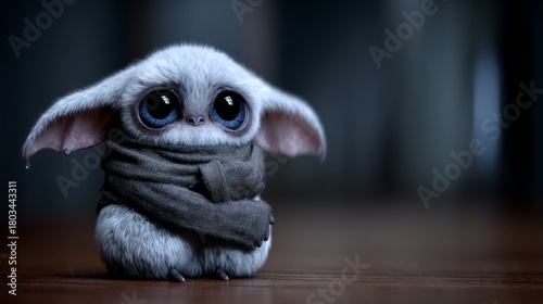 Obraz premium a cute, fluffy creature with large blue eyes wearing a scarf