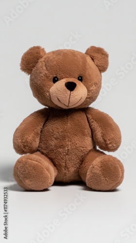 © neatlynatly, Obraz premium A cute, fluffy teddy bear is sitting isolated against a white background, showcasing its soft texture and friendly appearance.