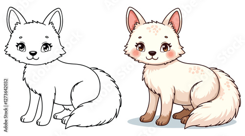 © Crafter, Obraz premium A Cute Fox Isolated Line Art Vector Outline Illustration Black and White with Coloring Sample