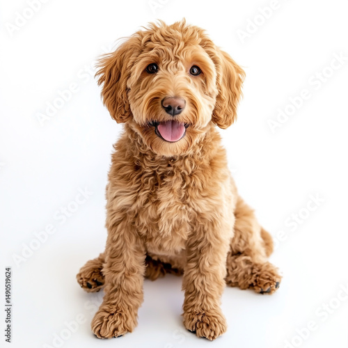 © Roma Collection, Fototapeta premium A cute goldendoodle puppy sitting on a white background looking at the camera