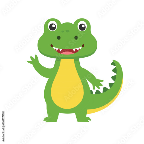 Obraz premium A cute green cartoon crocodile with a friendly wave and a cheerful smile