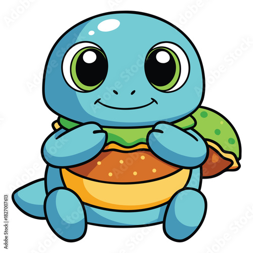 © Halima, Naklejka premium A cute green cartoon frog and turtle animal character illustration