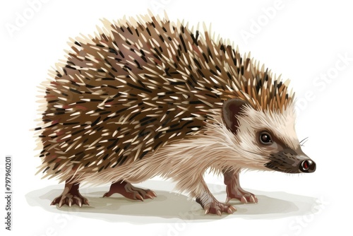 Fototapeta premium A cute hedgehog standing on a plain white background. Suitable for various...