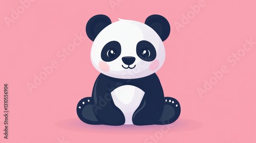 Fototapeta premium A cute illustration of a panda bear sitting on pink background