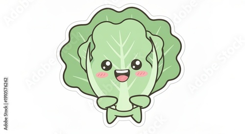 Fototapeta premium A cute kawaii romaine lettuce character sticker with a happy face on a white...