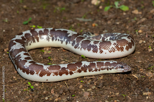 Fototapeta premium A cute Kenyan sand boa (Gongylophis colubrinus) on a natural sand surface