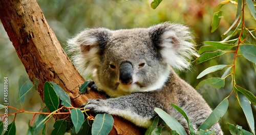 Obraz premium A cute Koala in the Green Environment ,Sleepy Koala , Cute Koala