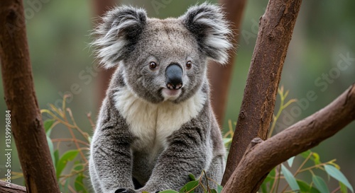 © HeriAfrilianto, Fototapeta premium A Cute Koala Is Perched In The Branches Of A Tree