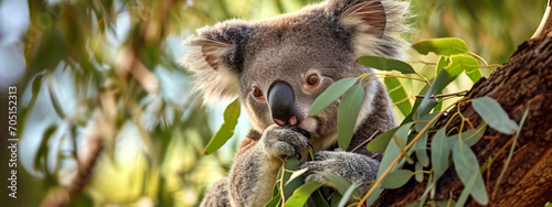 © Anna, Fototapeta premium A cute koala is sitting on a tree branch