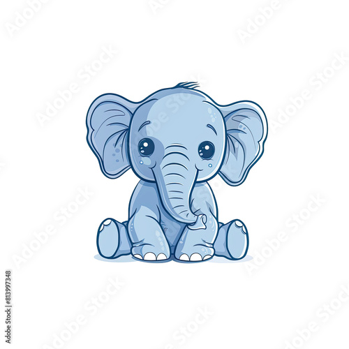 Fototapeta premium A Cute Little Elephant Sitting, Cartoon Illustration
