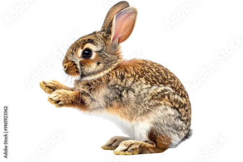 © Tofajjol, Fototapeta premium A cute little rabbit, reaching out its paw towards the camera, in a transparent background