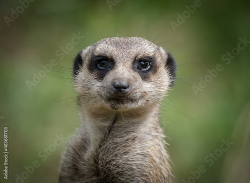 © Marrow83, Fototapeta premium A cute meerkat closeup that is posing in front of the camera, copy space