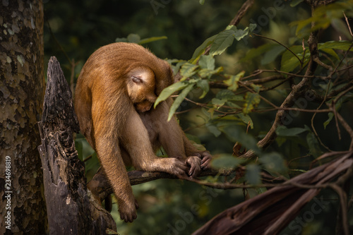 © thassin, Fototapeta premium A cute Monkey on the tree ,Monkey Climbing Tree.
