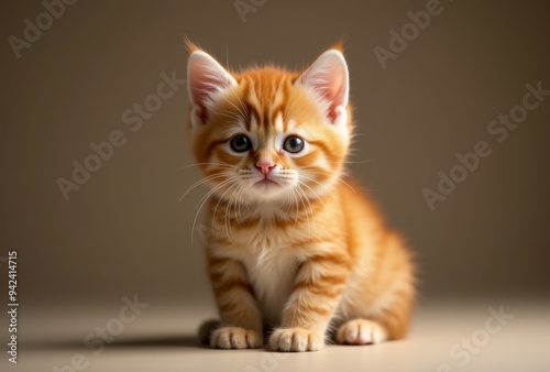 © Space Priest, Fototapeta premium A cute orange kitten is sitting on a table