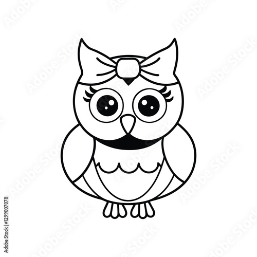 © rajib, Obraz premium A cute owl with a big bow on its head line art vector illustration