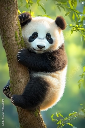 © YONG, Obraz premium A cute panda hanging from a tree