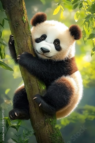 © YONG, Obraz premium A cute panda hanging from a tree