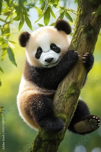 © YONG, Obraz premium A cute panda hanging from a tree