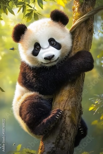 Fototapeta premium A cute panda hanging from a tree