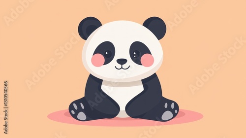 © 11faqihtanjung, Naklejka premium A cute panda illustration depicted sitting with a light colored background