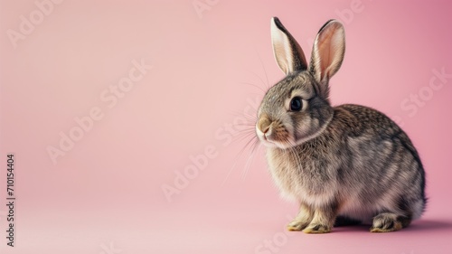 © Artyom, Obraz premium A cute rabbit against a soft pink background