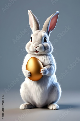 © Rat Art, Obraz premium A cute rabbit holding an easter egg, cartoon character isolated on white background