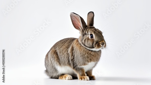 Fototapeta premium A cute rabbit sitting on a white background, showcasing its fur and features.