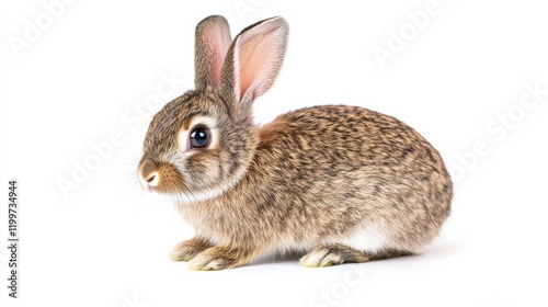 © Sirichat. Camphol, Obraz premium A cute rabbit sitting upright, ears perked up, isolated on a pure white background,