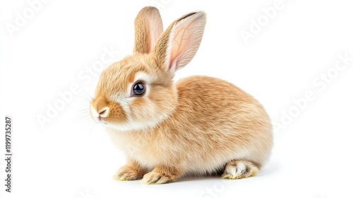 © Sirichat. Camphol, Obraz premium A cute rabbit sitting upright, ears perked up, isolated on a pure white background,