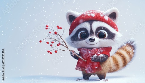© Olga, Fototapeta premium A cute raccoon wearing a red scarf