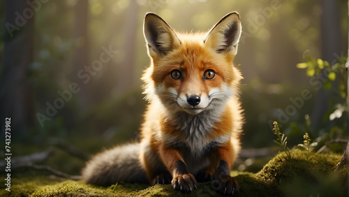 Obraz premium A cute realistic Fox with a plain background.