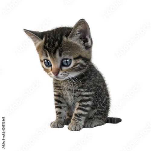 © Ty_sir 67, Obraz premium A cute, realistic kitten sitting down with large eyes, conveying innocence and playfulness.