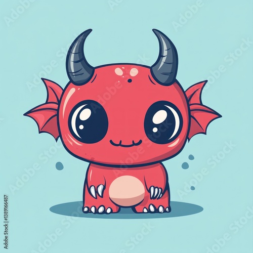© anggun, Fototapeta premium A cute red cartoon demon with big eyes and small wings