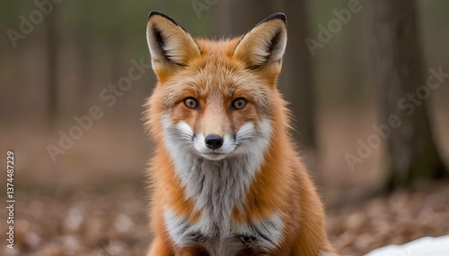 Fototapeta premium A cute red fox cub in the wild with fluffy fur