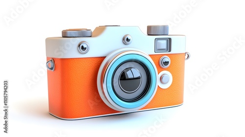 Fototapeta premium A cute, retro-style camera icon in orange and silver, with a blue lens and a...