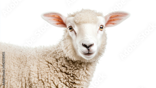 © Yuwarin, Fototapeta premium a cute sheep looking at the camera isolated on a white background