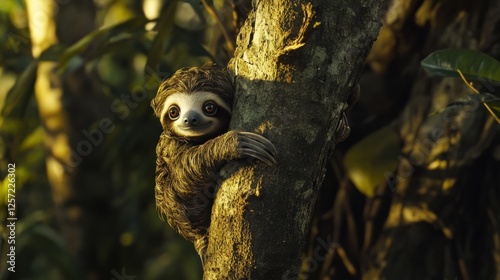 © Penatic Studio, Obraz premium A cute sloth clings to a tree in the jungle