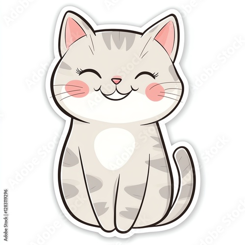 © Samaphon, Fototapeta premium A cute, smiling cartoon cat illustration with soft, friendly features.