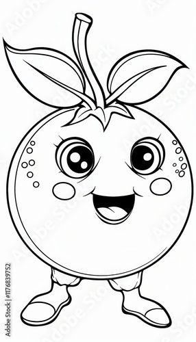 © Gudang, Obraz premium A cute, smiling orange character with big eyes and little shoes. Ideal for coloring books, children's illustrations, or educational materials.