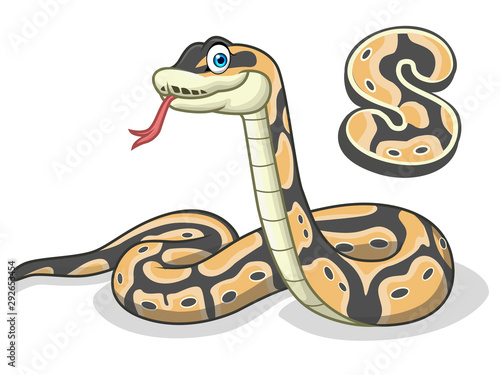 Obraz premium A cute snake character or ball phyton with letter S isolated on white...