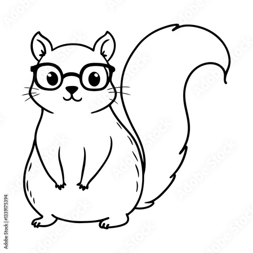 Obraz premium a cute squirrel wearing glasses, drawn with a simple outline, creating a friendly and intellectual appearance vector illustration