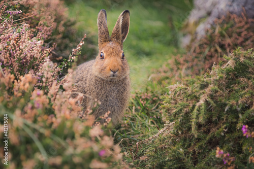 © Stephen, Fototapeta premium A cute startled European Rabbit (Oryctolagus cuniculus) on high alert on the Dingle Peninsula in Ireland.