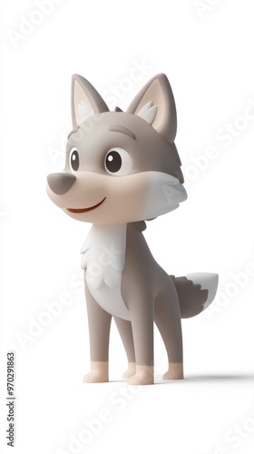 © BerkahStock, Obraz premium A cute, stylized cartoon wolf character with a friendly expression.