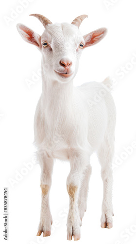 © Rona_65, Fototapeta premium A cute white goat standing gracefully isolated on a white background.