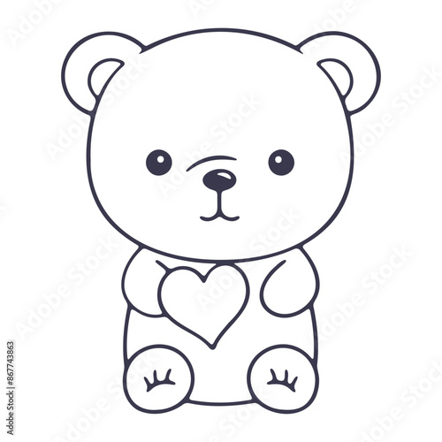 Fototapeta premium A cute white teddy bear with a heart shape on its chest, sitting on the ground