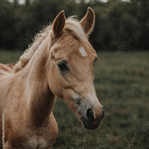 © Sajjad, Fototapeta premium A cute young palomino foal with a short but